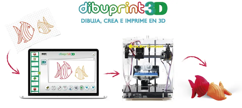 Dibuprint 3D es la herramienta que permite al usuario diseñar en 3D sin conocimientos previos. Un sistema que simplifica y agiliza al límite el proceso de modelado en 3D. De una manera sencilla, directa e intuitiva, podremos trasladar nuestros diseños del papel a la pantalla. Fácilmente lograremos transformar una imagen archivada en el ordenador, en un modelo en 3D. Seremos capaces de dibujar con el ordenador y visualizar con un clic su transformación en un archivo 3D. Finalmente, Dibuprint 3D genera el archivo STL para su impresión.